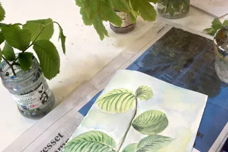 Der kan fx. arbejdes med blyant, akvarel, akryl, collage og pastel.