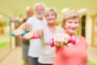 Vi træner stående, siddende og liggende på måtter samt bruger redskaber som træningselastik, træningsbolde, stepbænke o.l.