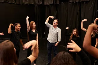 skuespiltekniske øvelser, improvisation, karakterarbejde, krop og stemme.